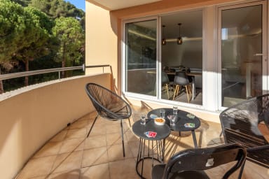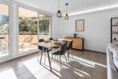 * Ideally located between Nice and Cannes * Underground parking (max height 1.85m) * Air conditioning * Sunny terrace with forest * Quiet surroundings * In a lively area with everything nearby * 8 minutes by car from the Cap 3000 shopping centre * 8 minutes by car from the airport * 7 minutes by car from the airport