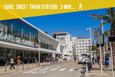 Situé à deux pas de la gare, de la Croisette et ses plages, du Palais des Festivals et ses congrès, de la vieille ville et ses restaurants ainsi que de la célèbre rue d'Antibes, rue la plus commerçante de Cannes.
