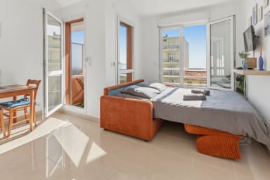 - Super studio cosy en bord de mer ☀️ - À 1 min à pied de la plage & du tramway 🚋 - À 3 min de la place Masséna 🌴 - Ensoleillé (expo sud) et parfait pour 2 personnes 💛 - Niché au 5ème étage (Avec ascenseur) - WIFI - Climatisation - À 20 minutes en bus ou tram des restos, bars et du marché du Cours Saleya 🥂🌺 - Aéroport accessible directement en tram (Ligne 2)