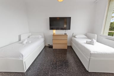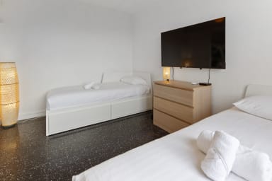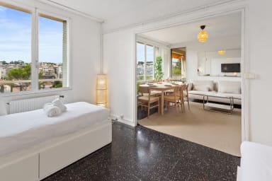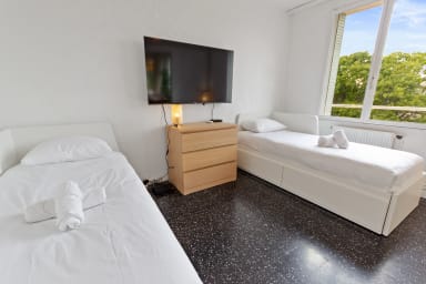 Ce spacieux 3 pièces entièrement rénové peut accueillir jusqu'à 6 personnes. Parking disponible gratuitement.