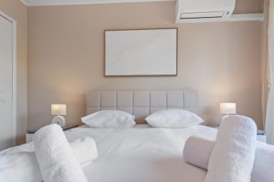 → Climatisation dans la chambre avec le lit double et le salon. Pas de climatisation dans la chambre avec les deux lits simples. Il y a un ventilateur au plafond dans celle-ci.