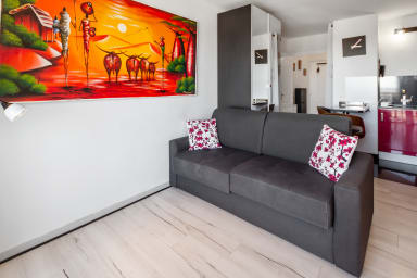 Charmant studio de 24 m2 situé au 2ème étage avec ascenseur. Composé d'une pièce de vie avec canapé convertible et d'une belle cuisine équipée, d'une salle de bains avec WC.