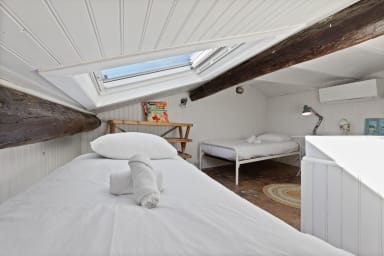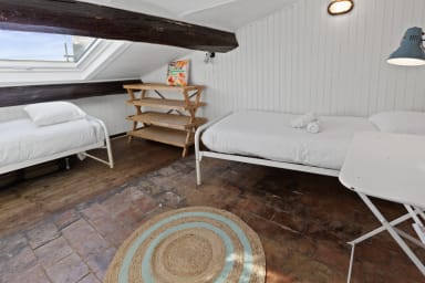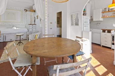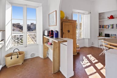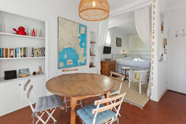 * Idéalement situé dans le cœur du vieil Antibes * Studio au 3ème étage * Chambre avec deux lits simples au 4ème étage * Terrasse rooftop au 5ème étage * Vue mer depuis la terrasse * SANS ascenseur * Musée Picasso * A 200m : Plage de la Gravette * A 300m : Parking public des Pêcheurs * Un lit double 140x200 * Deux lits simples 90x190 sous mansarde * WIFI haut débit * Accès piéton seulement
