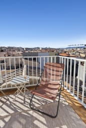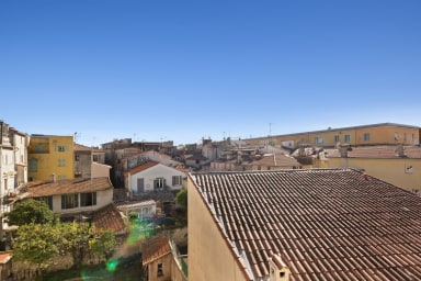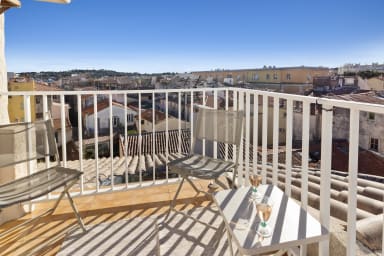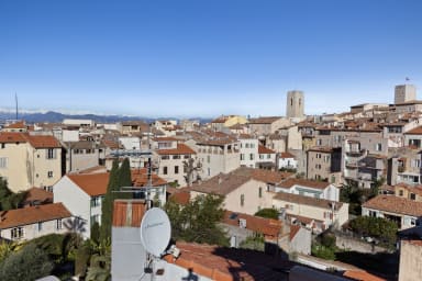 La terrasse est privative et au 5ème étage. Elle est à votre seule disposition et offre une vue splendide à presque 360° sur Antibes, le musée Picasso et la mer.