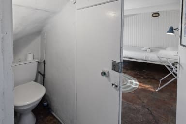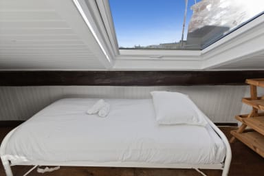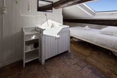 D’autre part les chambres et la terrasse sont séparés par un étage et une porte. La chambre du 4ème étage est sous les combles et fait maximum 1m75. Cette chambre bénéficie d'un deuxième WC situé sous l'escalier menant à la terrasse en dehors de la chambre.