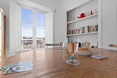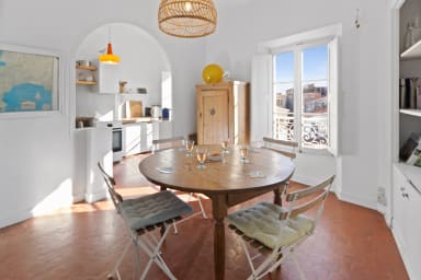 Situé au 3ème, 4ème et 5ème étage d'un bel immeuble typique du vieil Antibes, un très bel appartement très lumineux et décoré avec goût.
